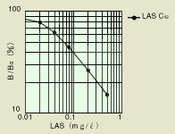 陰イオン界面活性剤直鎖アルキルベンゼンスルホン酸(LAS)は、合成洗剤のなかで最も使用量が多く、水道水質基準で0.2mg/l以下に規制されているメチレンブルー活性物質(MBAS)の大部分を占めています。